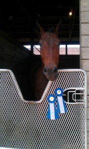 I could have ridden yesterday, but thought that it was a bit too hot (my car said it was 104 degrees when I left the house). I would have ridden if I’d realized that there was a nice breeze at the barn and the temperature was really only 94 degrees, but since I’m not Bent Jensen at PVDA’s Ride for Life (http://www.horsejunkiesunited.com/2012/06/24/bent-jensen-silva-martin-and-a-glow-in-the-dark-performance-fun-freestyles-at-pvda-ride-for-life/), I did not ride in my yoga shorts and sneakers. I should have packed my riding clothing just in case. Ah, hindsight, how clear you are.