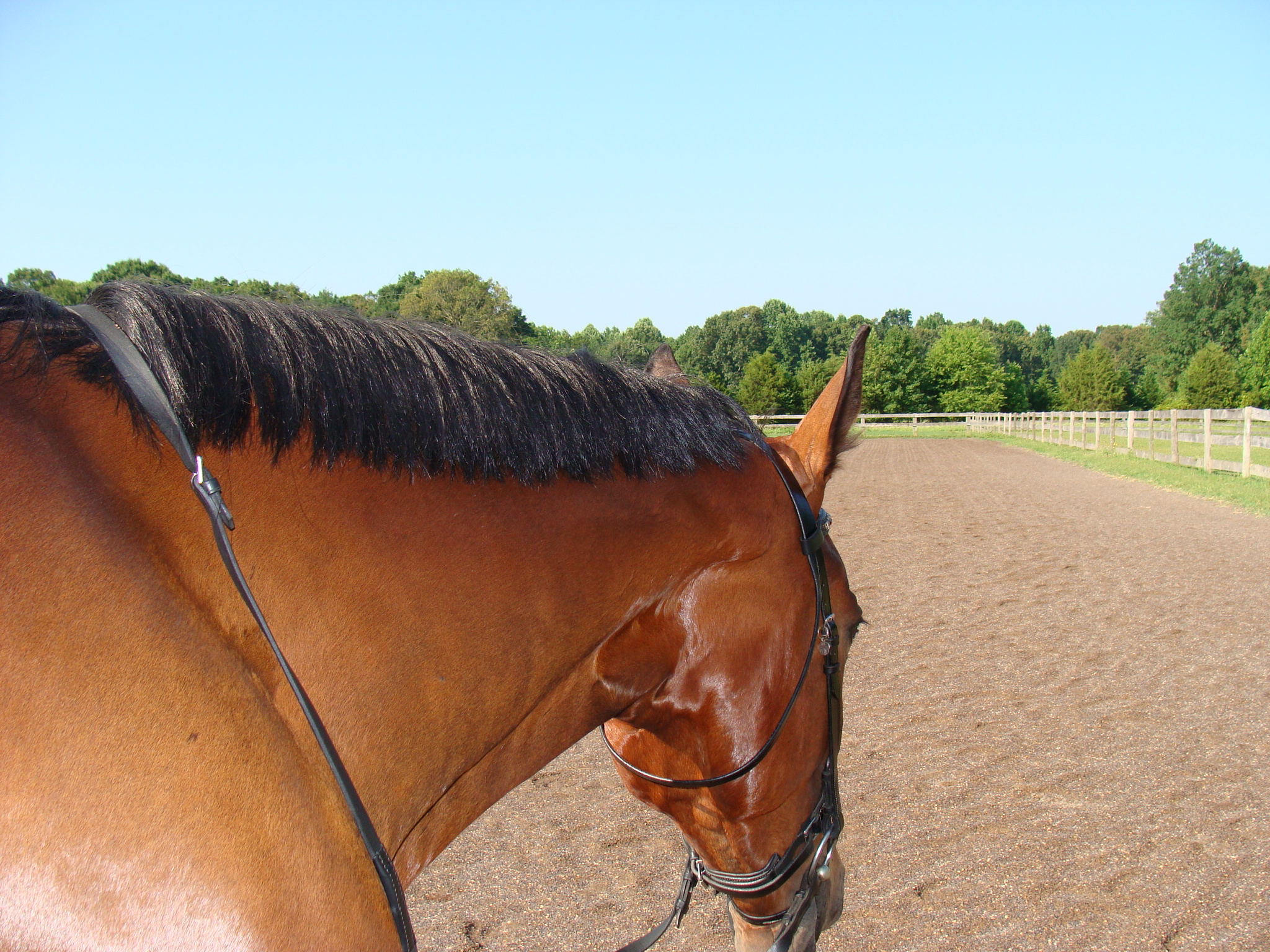Ike’s walk was nicely forward which was surprising given the weather conditions. His trot was lovely, I mean really lovely. Well connected, balanced and rhythmic. Ms. C commented that the front and hind ends appeared to be moving as one cohesive unit. Yea! Progress. So that means that either the boy is maturing into his body mass and the topline is getting stronger and/or the rider who sits astride the middle section is doing a better job with her half halts and aids to better help Ike find that sweet spot. Since most everything is dependent on the rider, I guess we have to say that the rider is finally catching a clue. Even his canter work was solid. He hit his transitions and I was actually able to ask for and achieve a shoulder-fore on the right lead. Ike still tends to get a bit quick to the left, especially down the long side, “Wee, let’s go faster!” It too shall get better in time. Total ride time – approximately 35 minutes before the rider cried Uncle, but I will take 35 minutes of the solid work we had today over an hour of, “Are you talking to me?” work with little accomplished.