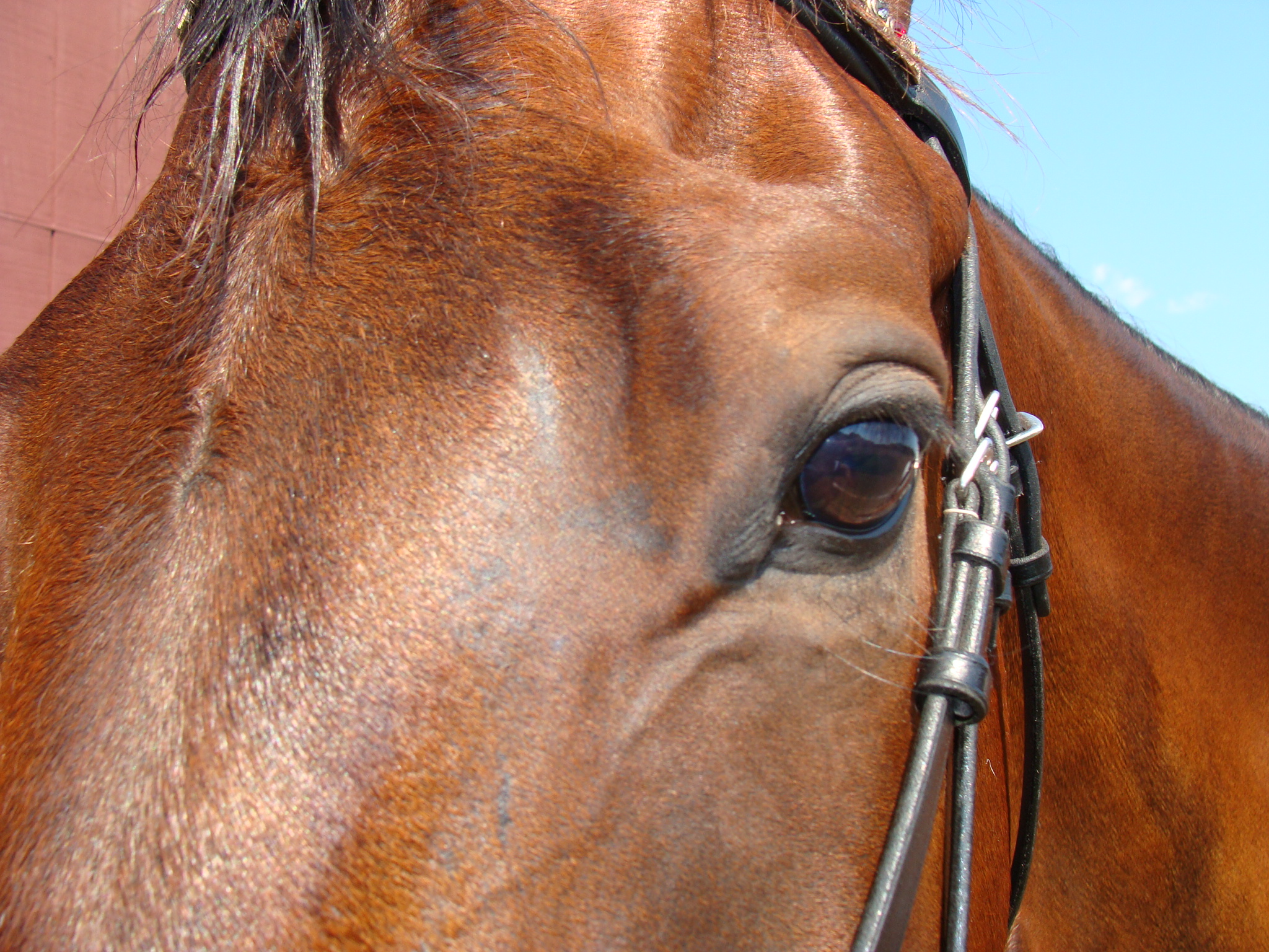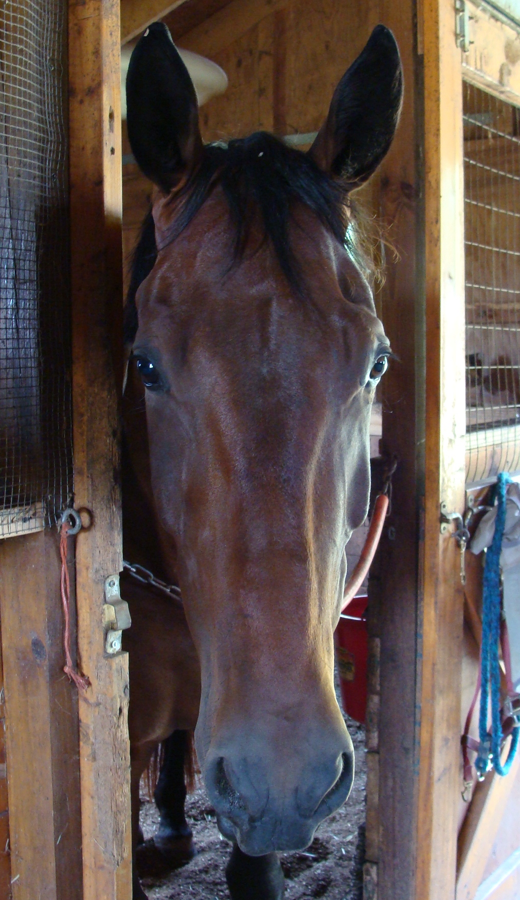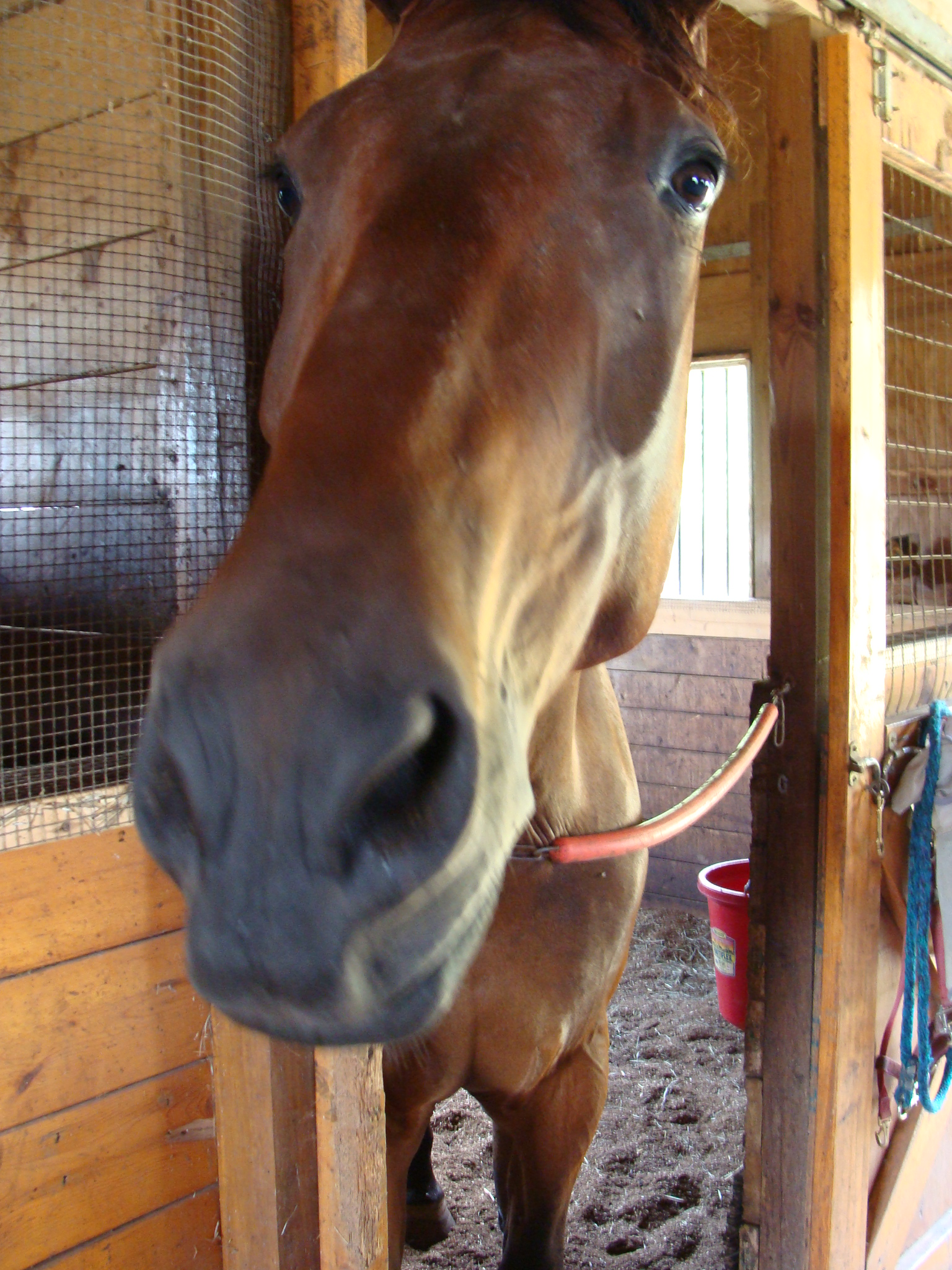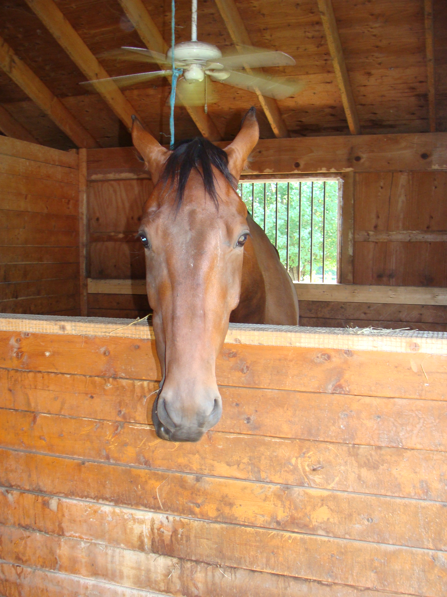 The wretched heat wave is over at least for the time being. The car thermometer registered 82 degrees as I arrived at the barn on Monday – 20 degrees less than Sunday. It was also cloudy for most of the day as well. Amazing what 24 hours can do for the weather around here. You would think that the horses would rejoice and want to spend all day outdoors. Sure there was still humidity, but the cooler temperature appeared to keep the bugs at bay…or was it the new sweatproof fly spray? Anyway, most of the other horses were quite content and then there was Ike. Weenie still only made it outdoors for a couple of hours on Monday and then acted the fool until Ms. C came to rescue him. My big, handsome man is a homebody.