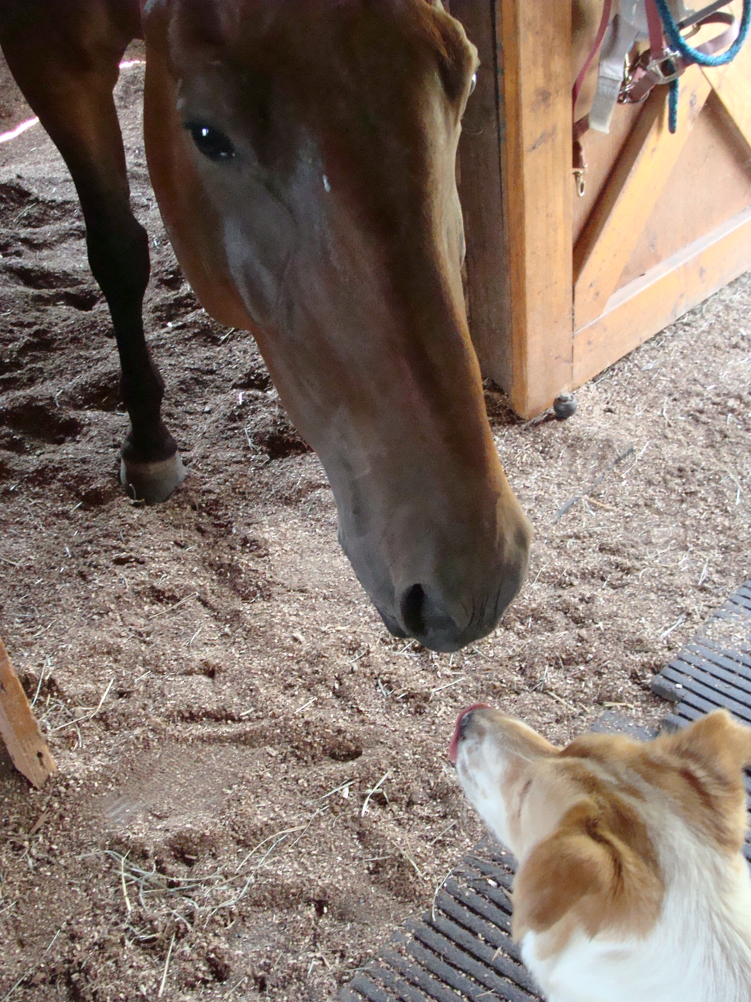 Success! I am happy to report that Ike’s tail was tangle-free today. Of course since I could now turn my attention to other parts of Ike’s body, I noticed that his whiskers have gone way beyond five-o’clock shadow and are approaching unkempt status. Bad, bad horsey mom. Should I feel shame? [I don’t] We aren’t going anywhere any time soon, so is it really a crime to let Ike go au naturale? Dare I tell you that his mane is also getting rather long and desperately needs thinning?