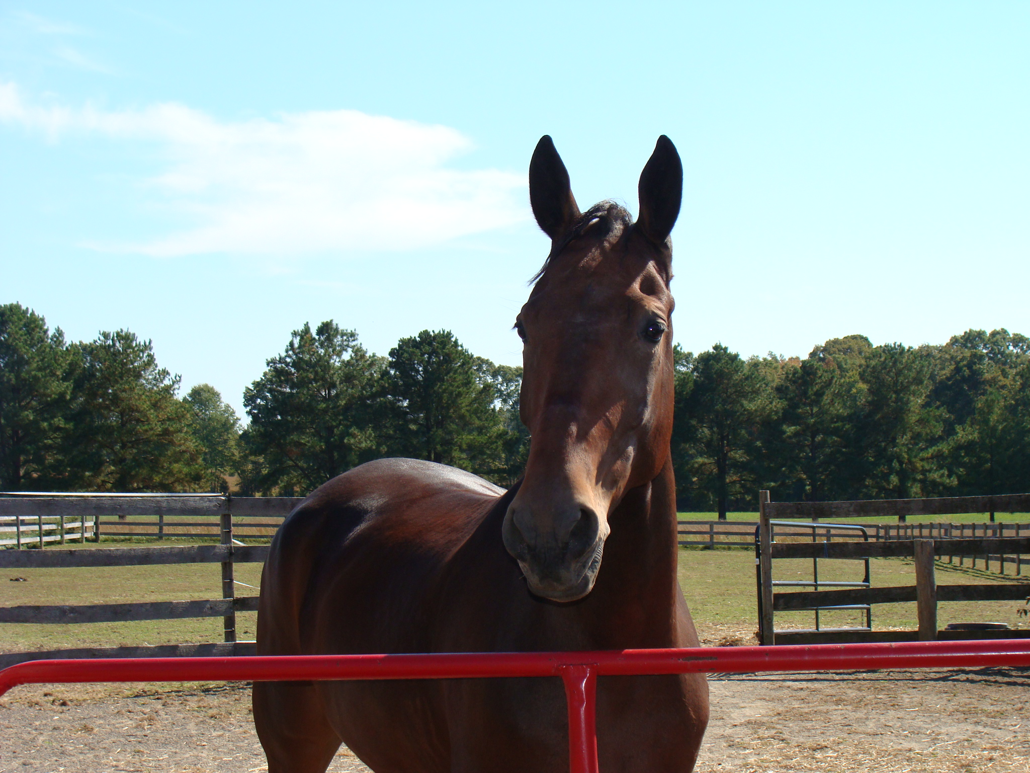 We started off slowly with absolutely no rhythm, connection or energy. Ike even decided to pin his ears when I asked for a little more gas. Multiple transitions later, Ike decided to pass gas. Ah, so that was the issue. Now let’s continue our lesson unencumbered. Ms. C really had me focus on riding a circle – not puttering in a round like shape – riding every stride, looking ahead, planning my half halts, asking for the correct flexion and bend. To the left, we nailed it with very little effort on my part. To the right, well, hmm, let’s just say that if I put on the cruise control, Ike doesn’t turn, and Ms. C fusses at me (and rightly so) for not maintaining focus and letting Ike straighten. Her words, “He is ready to learn this, but it is up to you to help him learn. You let him leak to the left and You lost that outside shoulder.” Double sigh. So much work. But she is right, so I tried again and we nailed it.