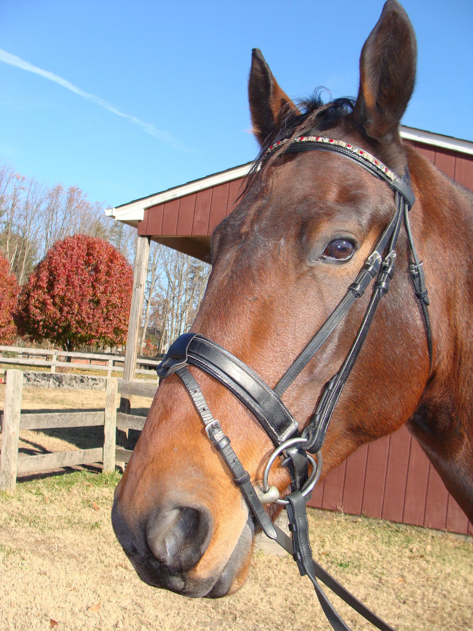 Bloody lip aside, I have enjoyed my rides this past week. Riding is a great way to get away from the hustle and bustle of the start of the holiday season. In my lesson on Wednesday, Ms. C reinforced the concepts that I worked on at the clinic. Stop overbending Ike’s neck, establish and keep a better inside leg to outside rein connection, and let go with my inside rein. The sad part is, I can see when another rider is overbending their horse’s neck and using too much inside rein, but put me on my horse, and all bets are off. That inside rein is like a crutch that I just can’t let go. When someone is on the ground reminding me, sure, I can listen and do it. When riding alone, that inside hand creeps tighter and tighter and next thing you know, Ike’s long neck is curled like the letter C and that outside shoulder is falling where it may.
