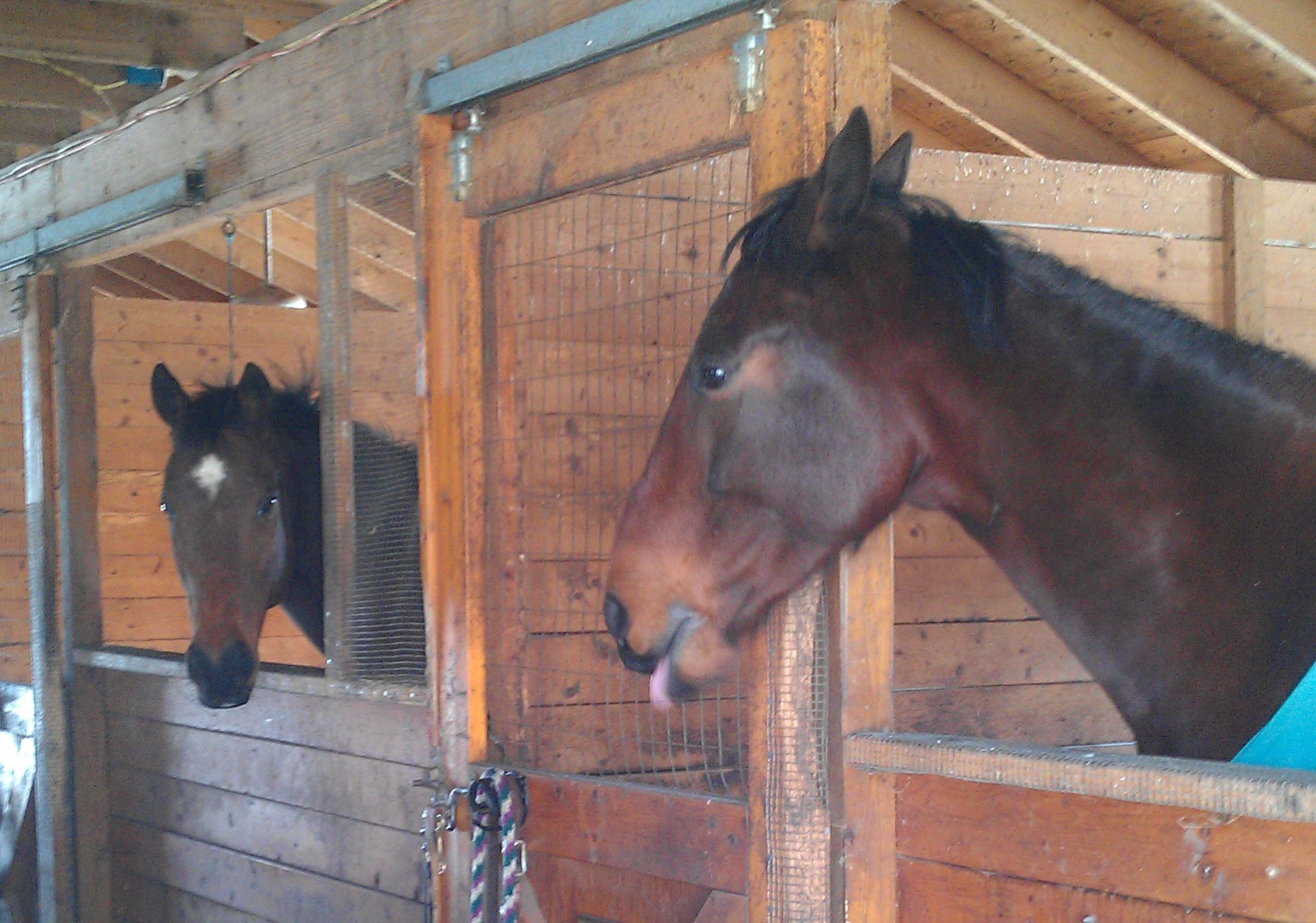 Umm, oh. Great. Baby Huey is now tall enough with a giraffe-like neck to reach the one piece of wood that he really shouldn’t destroy. I guess we will have to cover the beam with chicken wire to prevent further damage. (A side note: The commercially available No Chew sprays did nothing to curtail his noshing of the window frames and stall door last winter.) Before it is all said and done, Ike will be living in a chicken coop. We already had to strategically place chicken wire over the light switch to curtail his favorite nighttime game of “Lights On, Lights Off.” That set off a few nights of stall trashing by the other horses until we realized what he was doing.