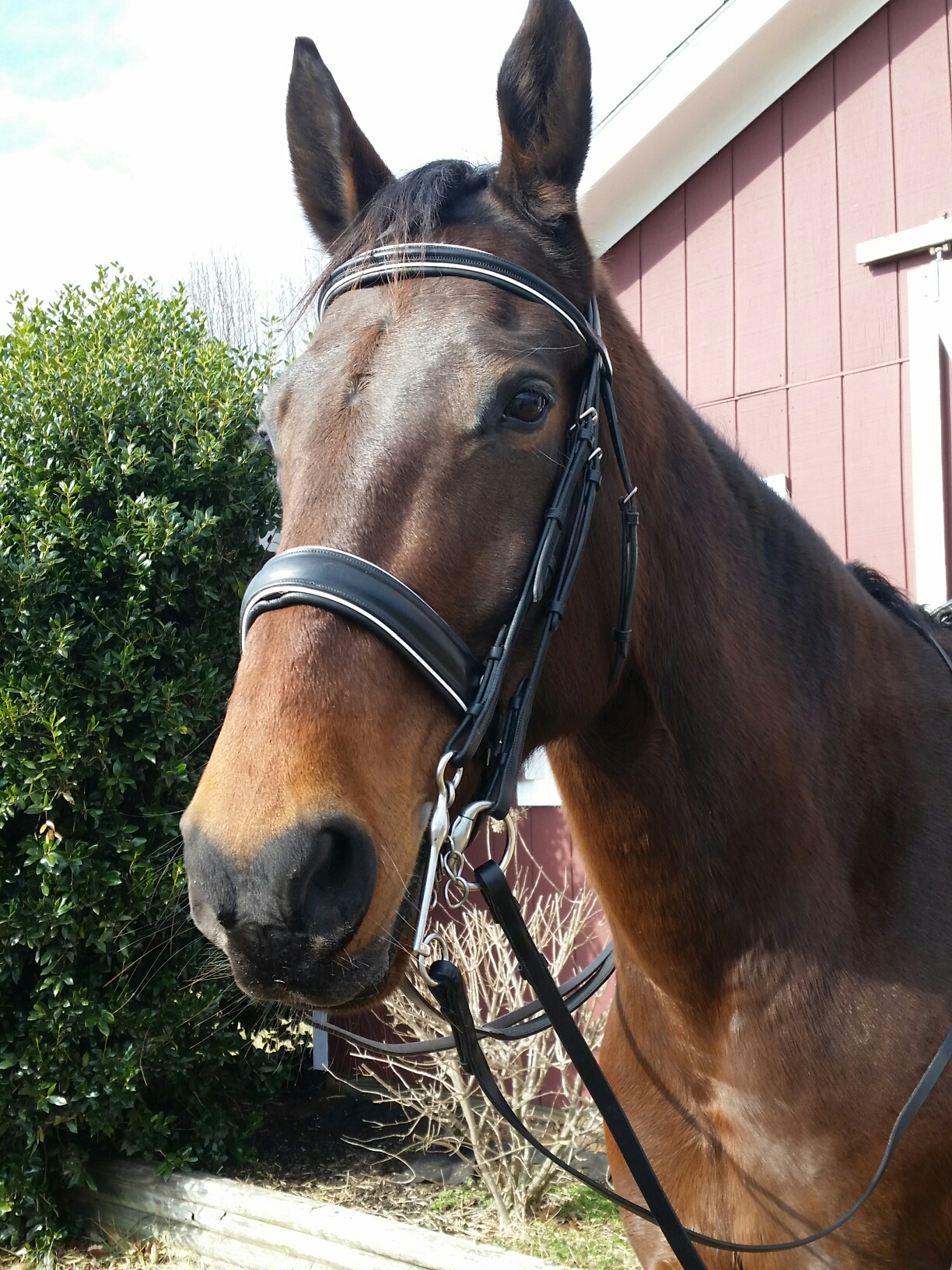 We schooled in our double bridle on Friday. It becomes our enemy when Ike is tense; he gets even more behind the bit due to his grabby-handed rider. But we persevered and we both finally relaxed enough to do some decent work. Note to self: When you trainer notes that the half pass work of the horse schooling with you would earn a score of a 9, you should correctly guess that your half pass work would not earn a 9.
