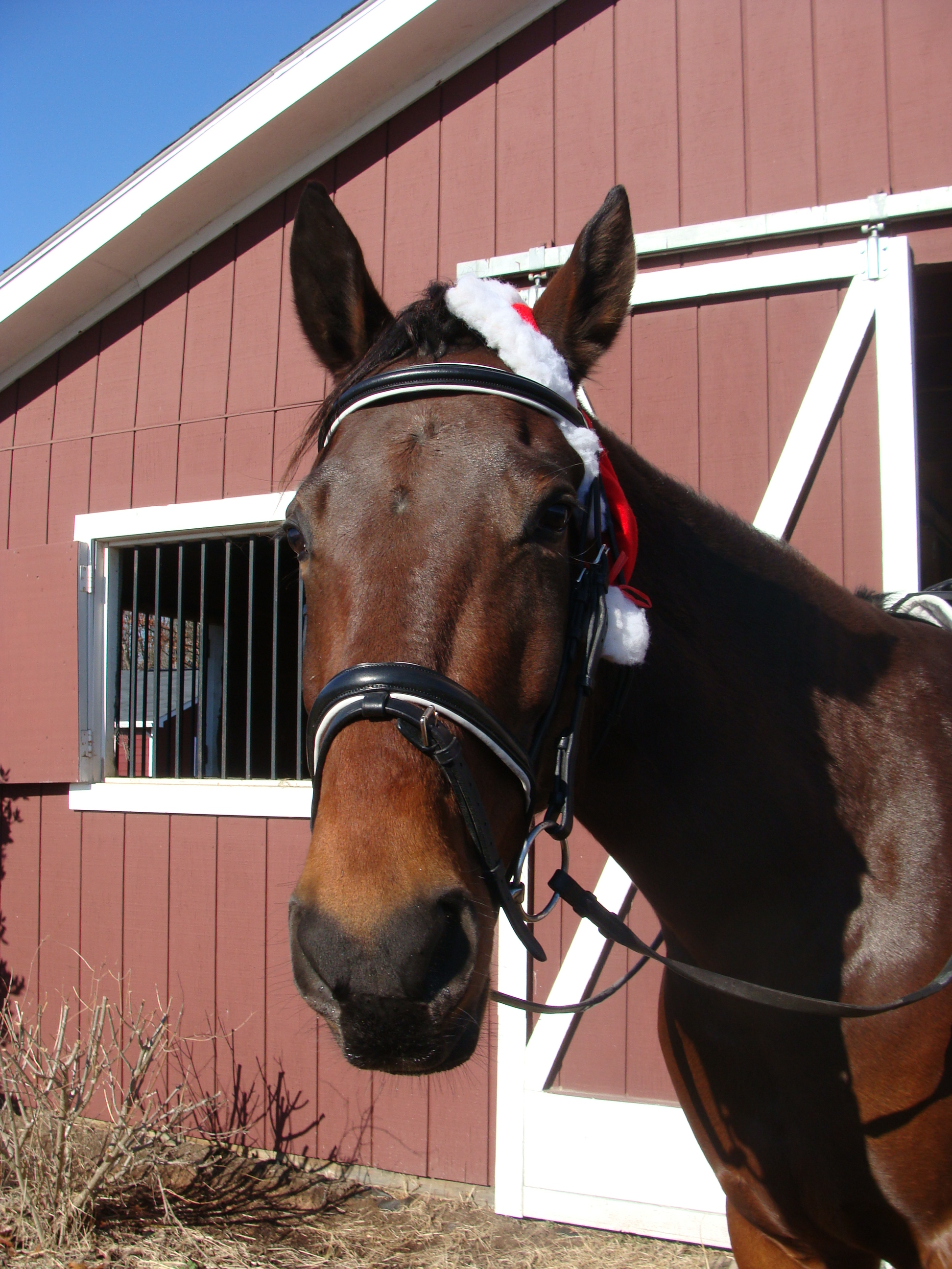 Step One, Day One – Locate the Santa hat. If you are anything like me, you stuffed it into a box/bag/tack box after Christmas last year and swore that you would remember where you put it. Ha ha. Finally find said Santa hat and realize that it is now too dark outside for photos. Put Santa hat back in tack box for another day.